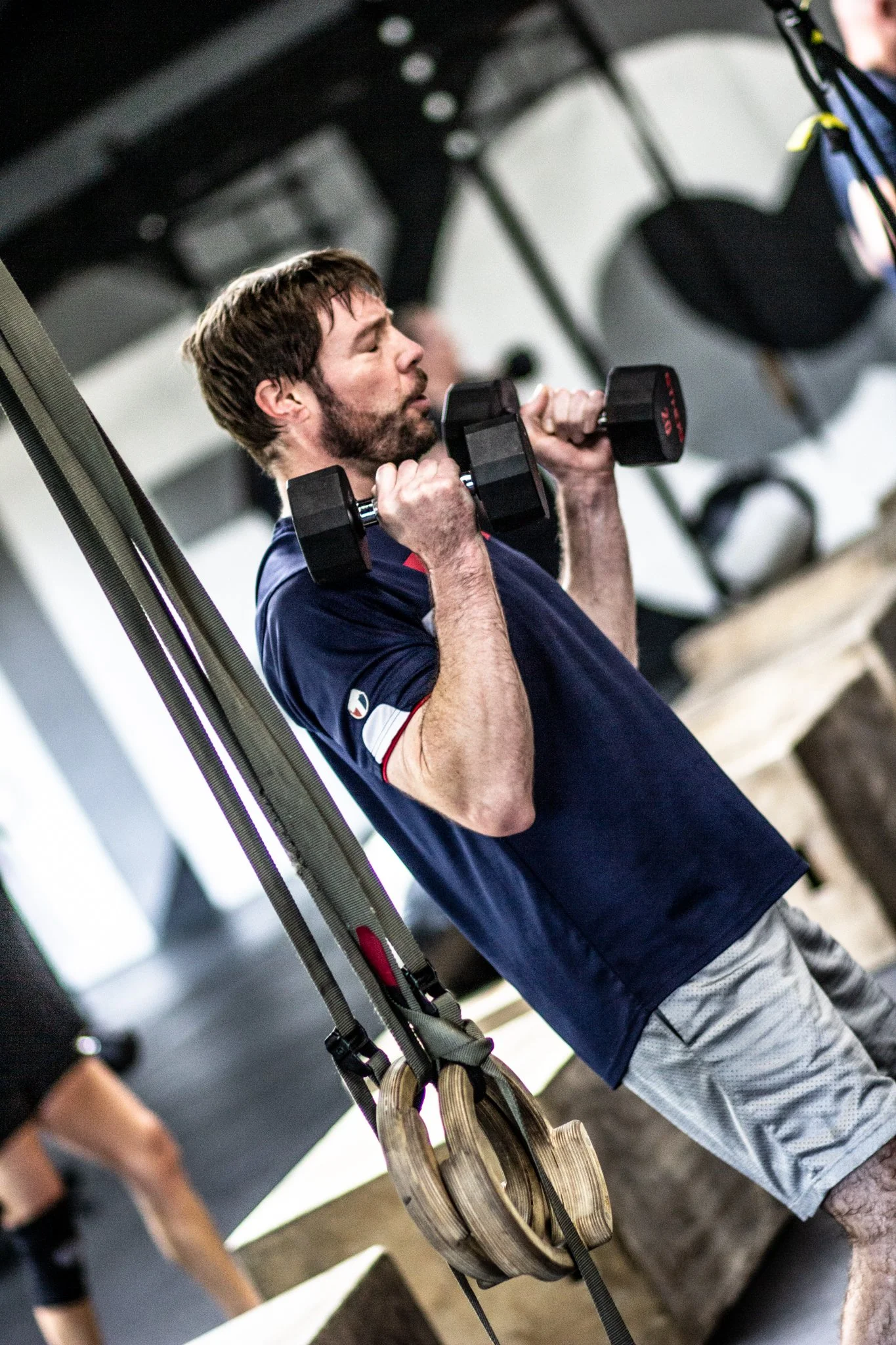 Strength work using dumbbells, kettlebells, and barbells