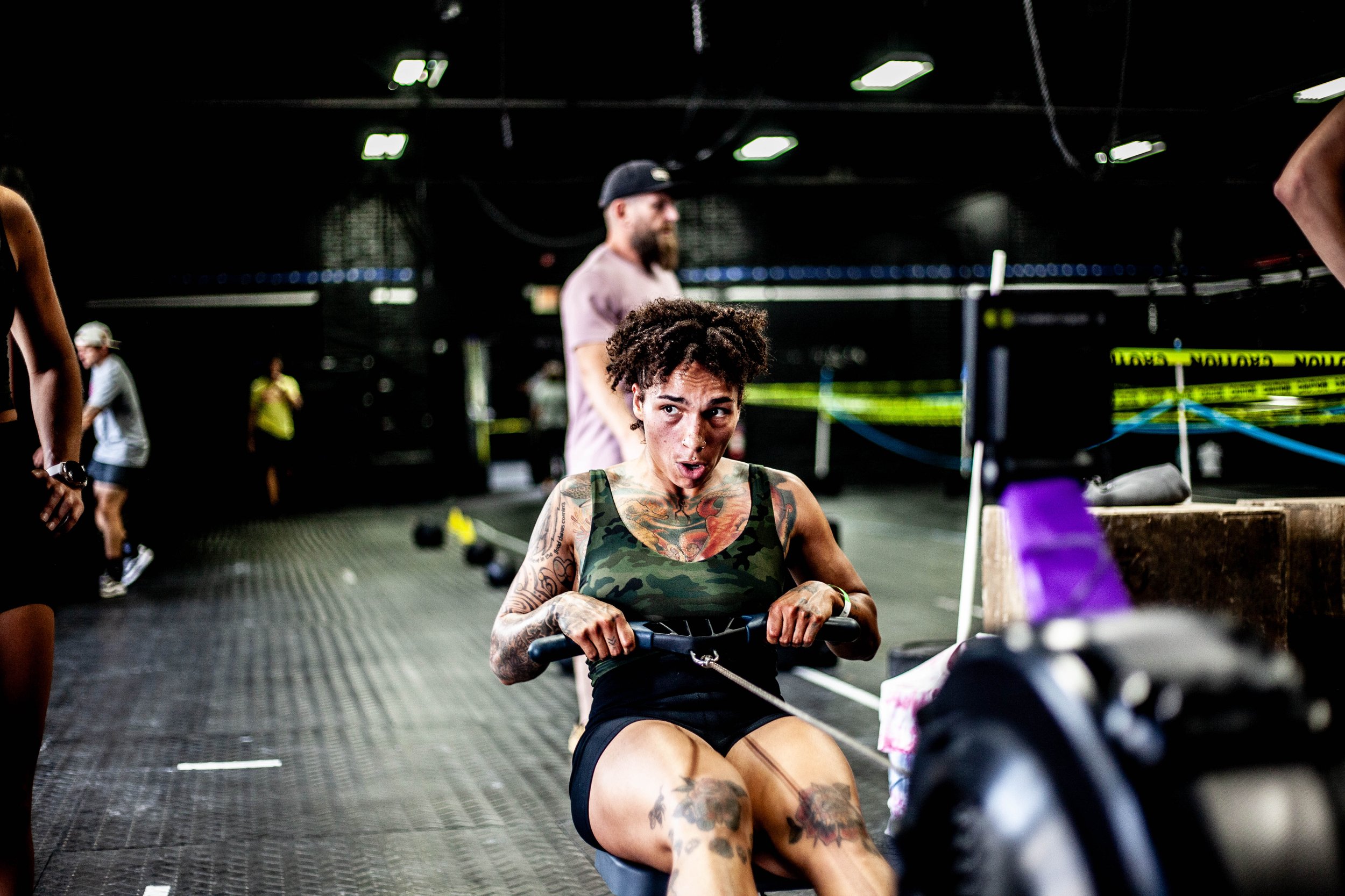 Functional workout stations like sled pushes, rowing, lunges, and more